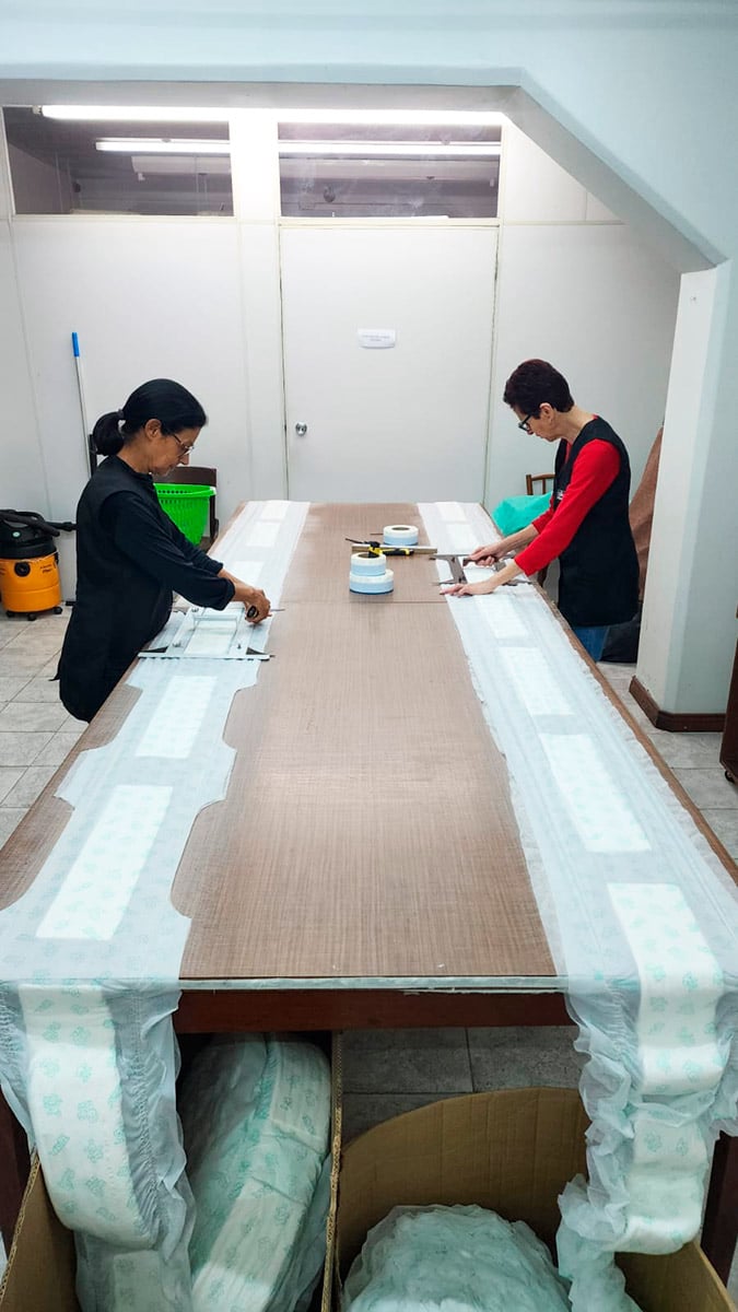 Na realidade, junto à Sociedade Santa Elisabete, ampliamos as atividades a partir de 2014, com a aquisição de uma máquina de fazer fraldas. Produzimos para doação, fraldas infantis e geriátricas.