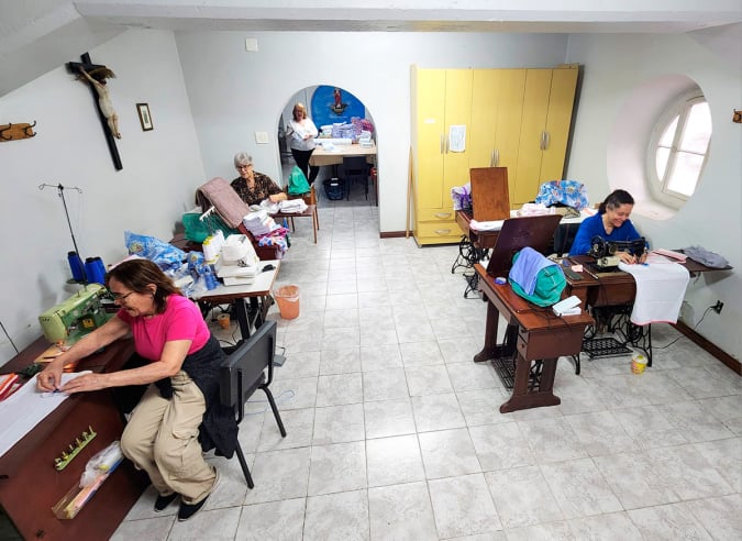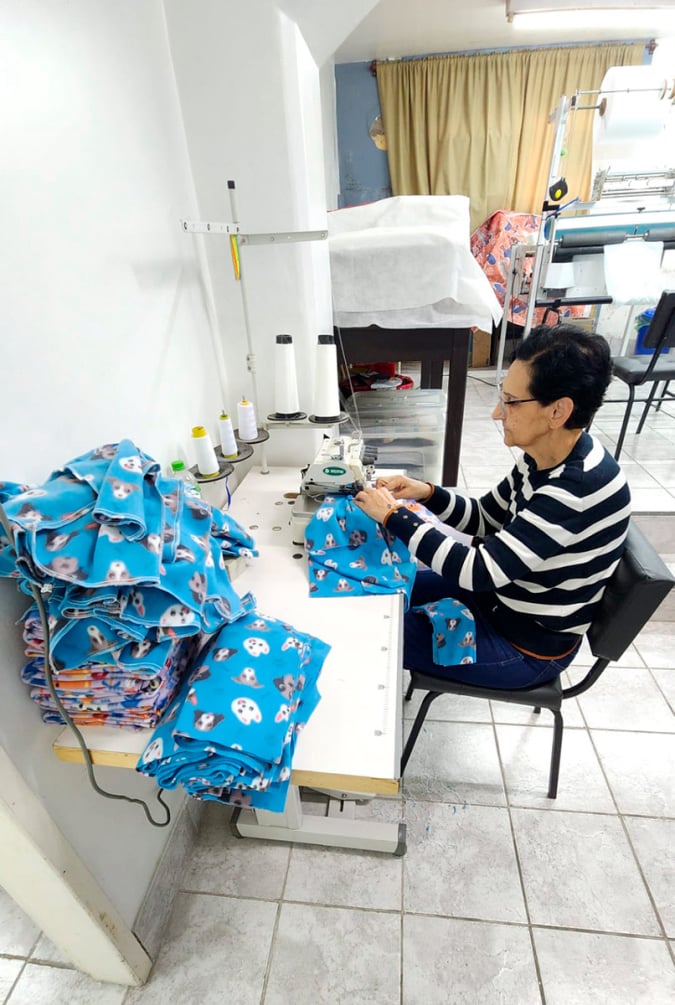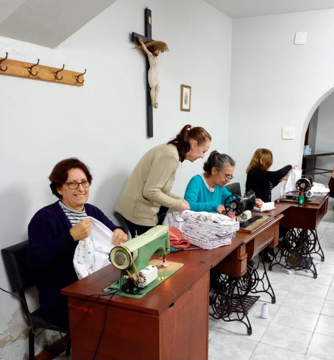 Um grupo de senhoras, que supervisionadas pela nossa coordenadora, Nelci e também com a colaboração de outros funcionários da Comunidade, voluntariamente, se dedicam a trabalhos de confecções de roupas, de kits para recém-nascidos, e outros trabalhos de costuras.